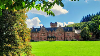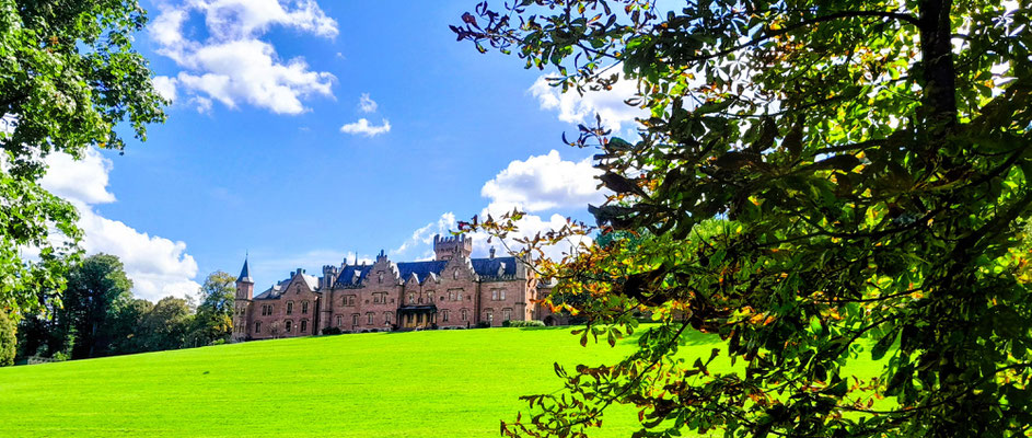 Hier bogen wir ab nach Schönberg, einem Ortsteil von Bensheim und zur Marienkirche, einer Hofkirche der Grafen von Erbach-Schönberg. Leider war die Kirche verschlossen. Von hier hatte man einen schönen Blick auf das Schloss Schönberg, ehemaliger Wohnsitz der Grafen Erbach-Schönberg. Nach einer Rast auf den Stufen der Kirche wurde weiter gewandert. Auf einem schmalen Pfad durch den Wald kamen wir wieder auf einen Höhenweg, hier bogen wir ab ins Tal zum Fürstenlager. Ein hübsches Gebäudeensemble, das idyllisch am Ende eines Talkessels in Bensheim-Auerbach liegt, 1790 errichtet als ehemalige Sommerresidenz der Grafen von Hessen-Darmstadt.
