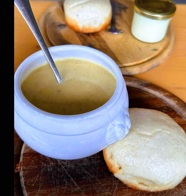 Dort trafen wir mit Mitgliedern zusammen, die mit dem Bus zum Kohlhof gefahren waren. Bei Linsensuppe und Würstchen, Kaffee und Kuchen warteten wir einen Regenschauer ab. Danach ging es zur Bushaltestelle, mit dem Bus nach Schriesheim und zu Fuß zurück nach Leutershausen.