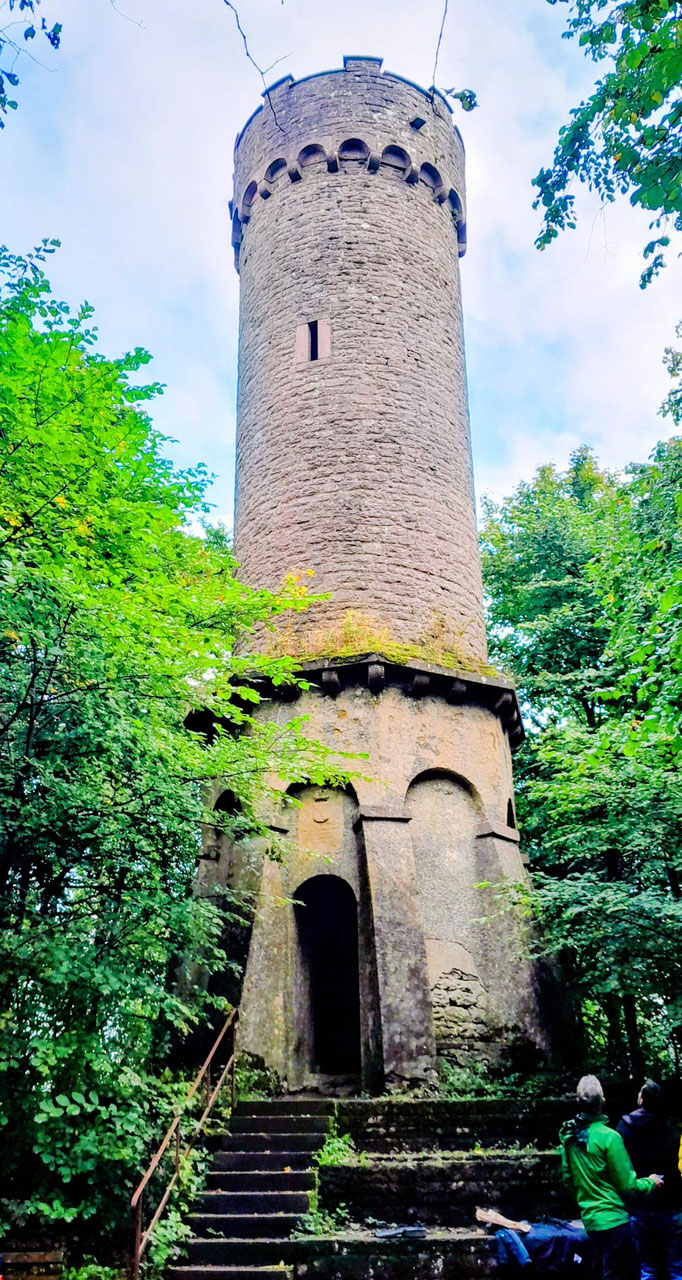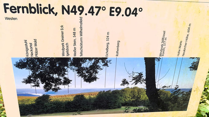 Start war der Bahnhof in Hemsbach. Durch die Bachgasse ging es zum Mühlweg und weiter ständig ansteigend am jüdischen Friedhof vorbei bis auf die Höhe zum Waldnerturm, oder auch Vierritterturm genannt. Dort empfing uns ein fantastisches Panorama mit Blicken in die Rheinebene und in Richtung Osten auf Siedelsbrunn und die Tromm. Nach einer kurzen Pause zum Trinken und Fotografieren ging es weiter zum Wanderparkplatz Schaumesklingel.