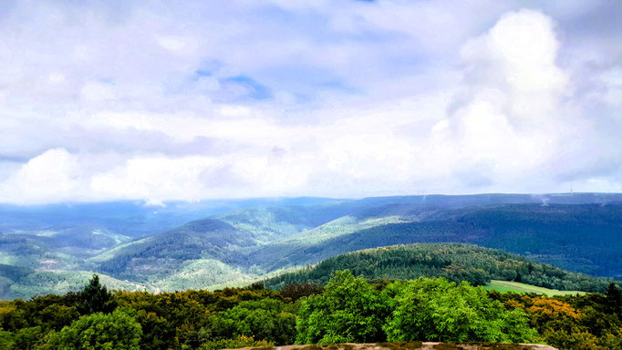 An einem schön gelegenen Rastplatz mit Schutzhütte des OWK Mörlenbach machten wir nochmals eine Pause und genossen das traumhafte Panorama.