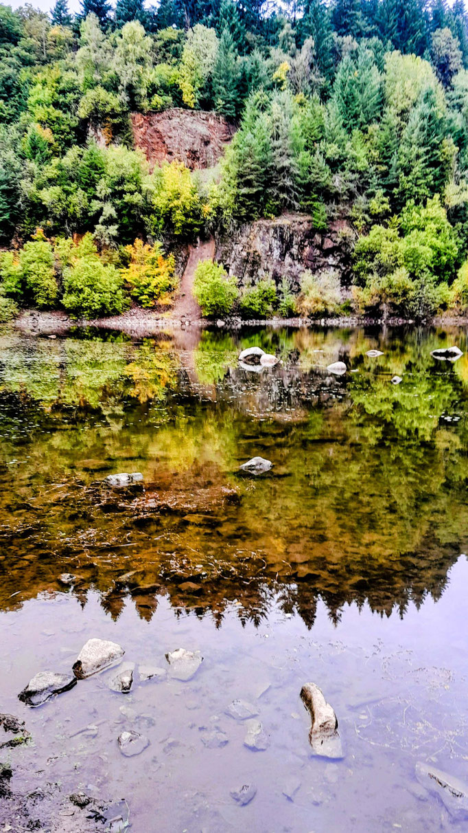 Entlang des Finkenbachtals gelangten wir zu einem kleinen Teich mit Seerosen, der in der herbstlichen Sonne in bunten Farben leuchtete.